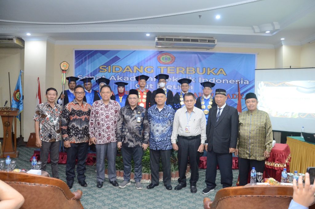 Foto bersama Kepala LLDikti Wilayah-I Prof.Drs.Saiful Anwar Matondang,MA.Phd (urutan ke.4 dari kiri) pada Acara Wisuda Program Diploma III Akademi Teknik Indonesia Cut Meutia – Medan.